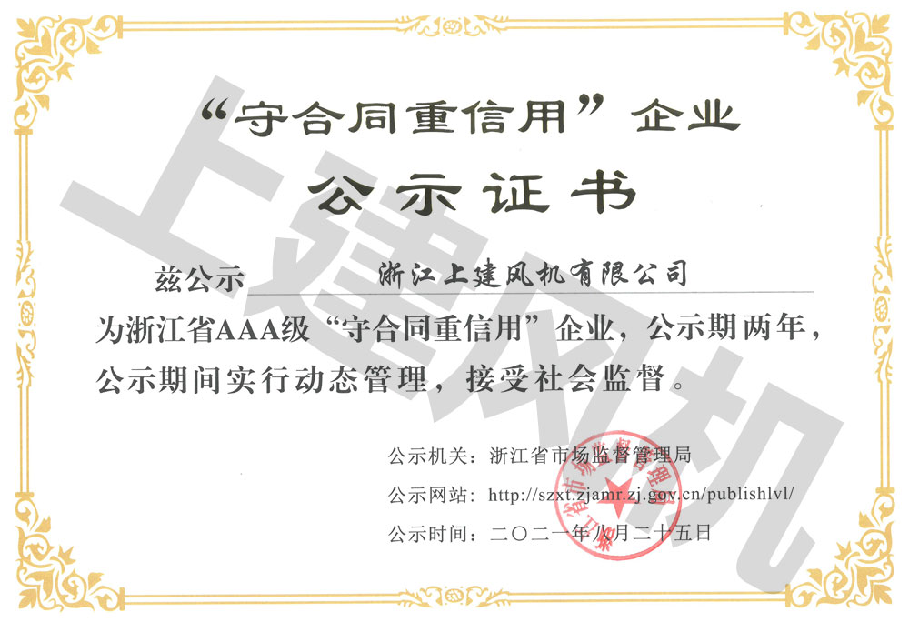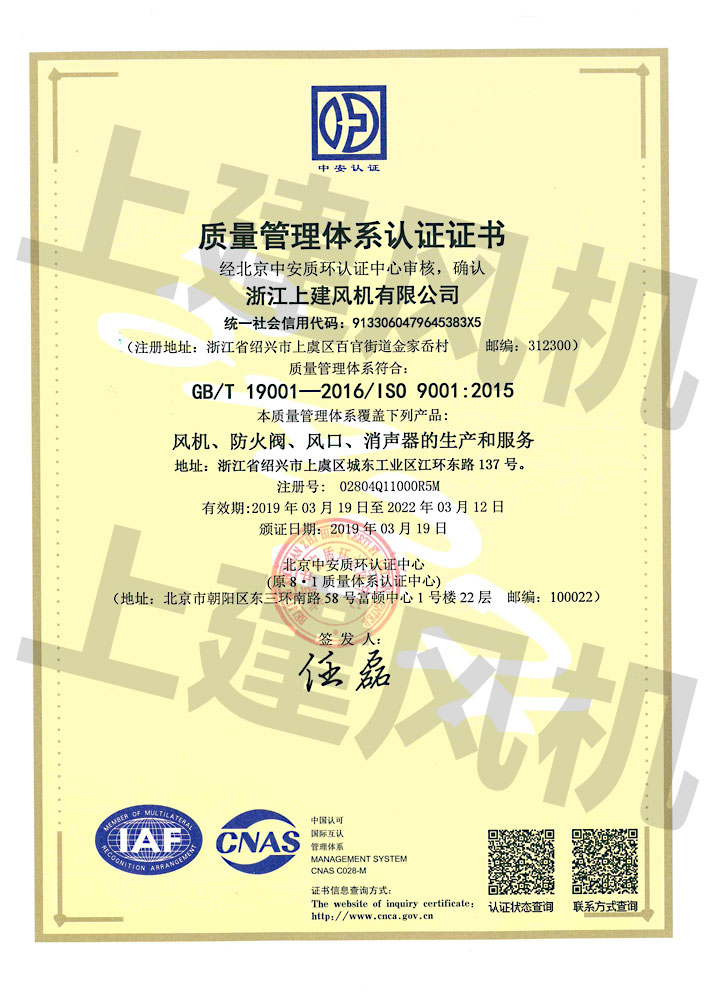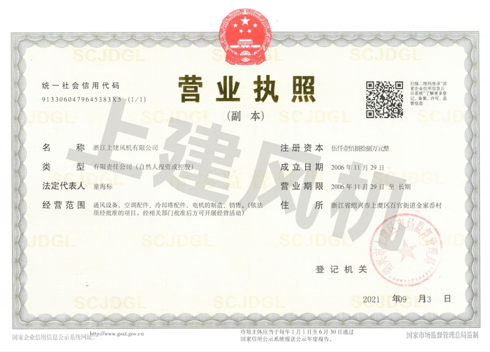 上建風(fēng)機(jī)商標(biāo)注冊(cè)證