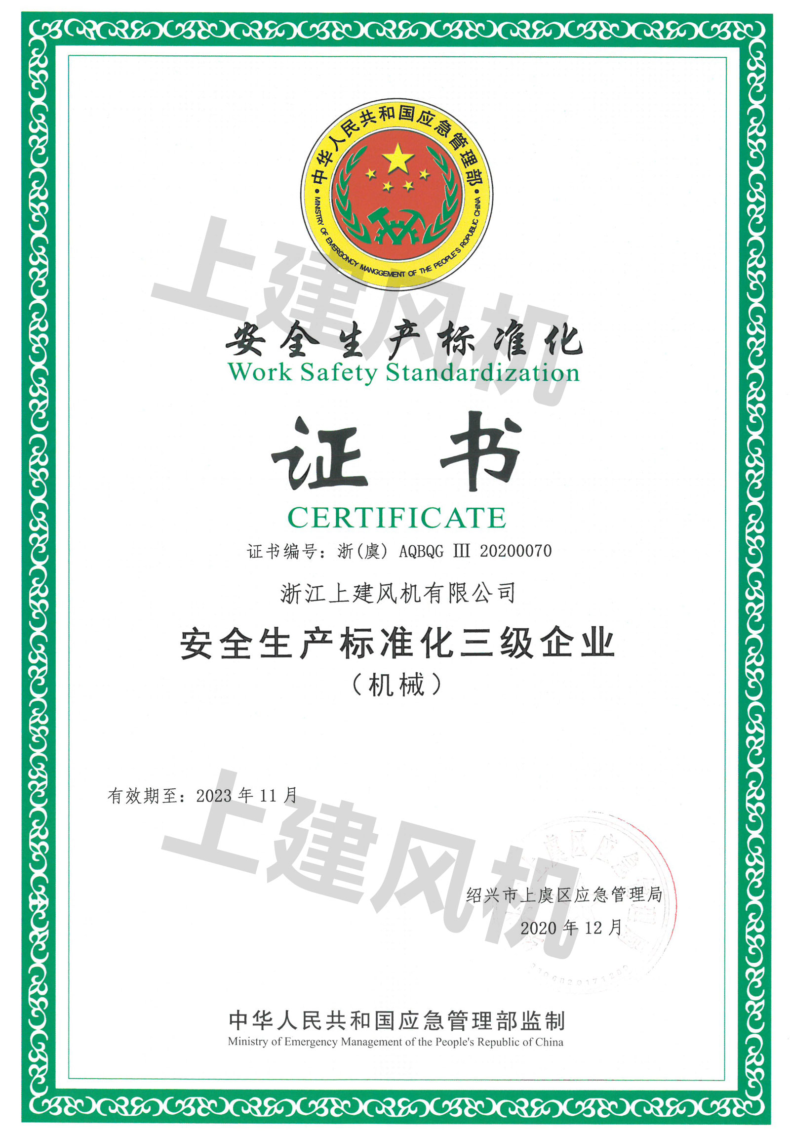 安全生產(chǎn)標(biāo)準(zhǔn)化證書