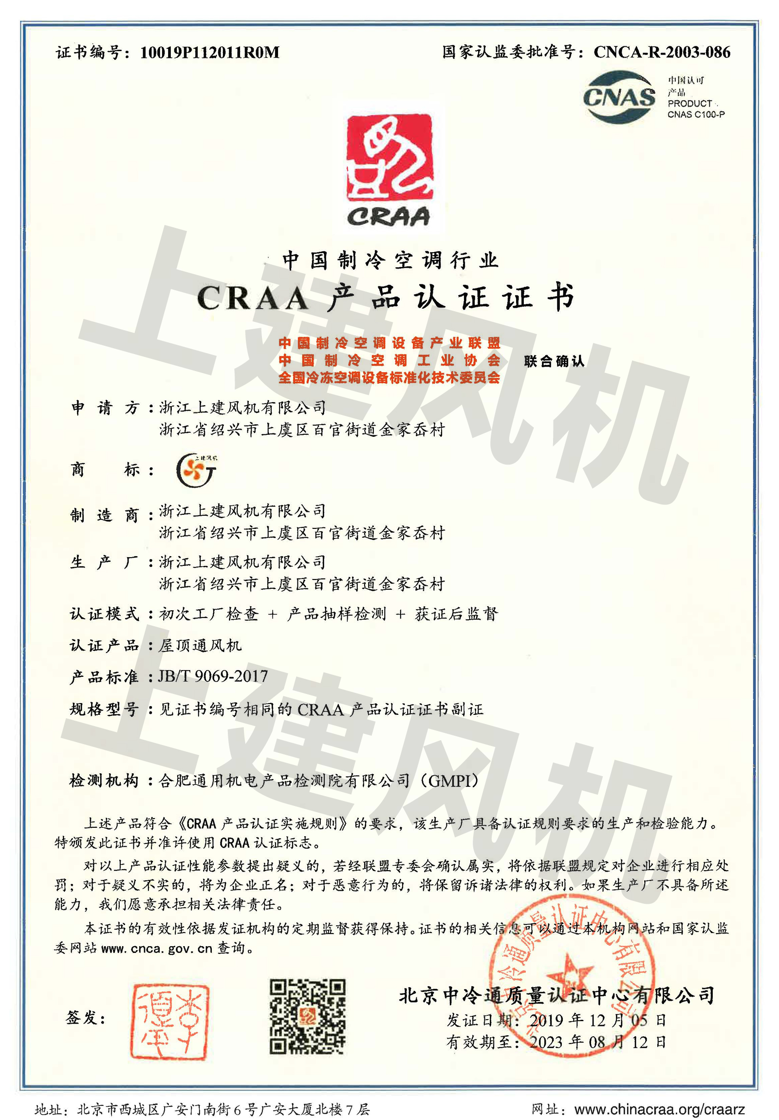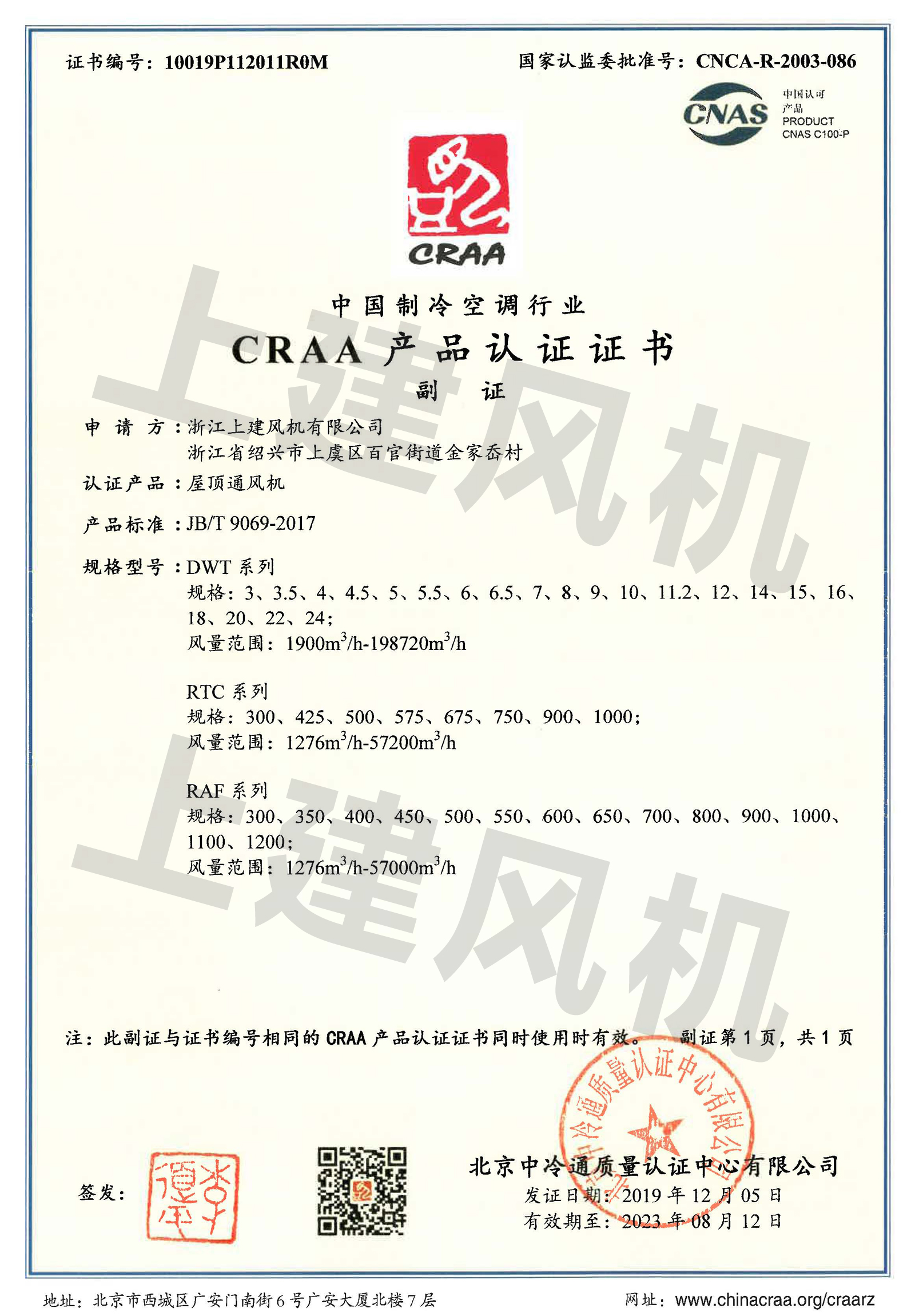 CRAA產(chǎn)品認(rèn)證證書