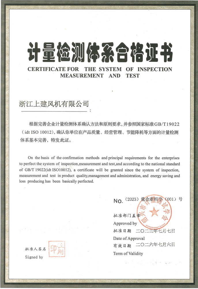 計(jì)量檢測(cè)體系合格證書