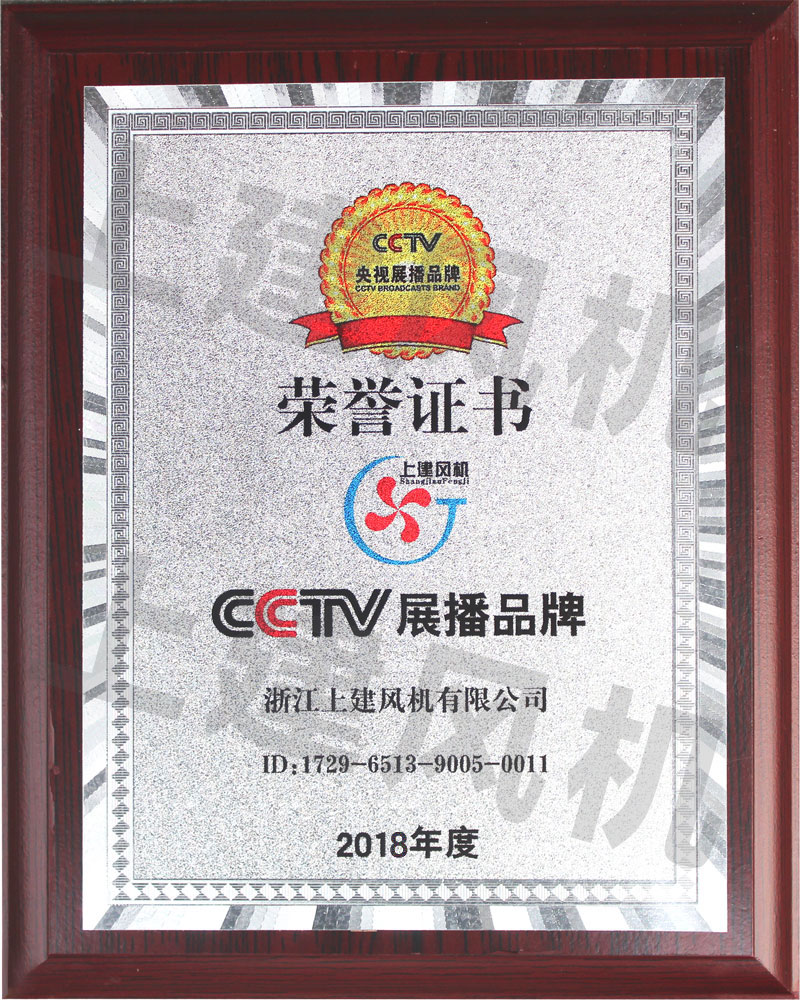 CCTV展播品牌榮譽(yù)證書