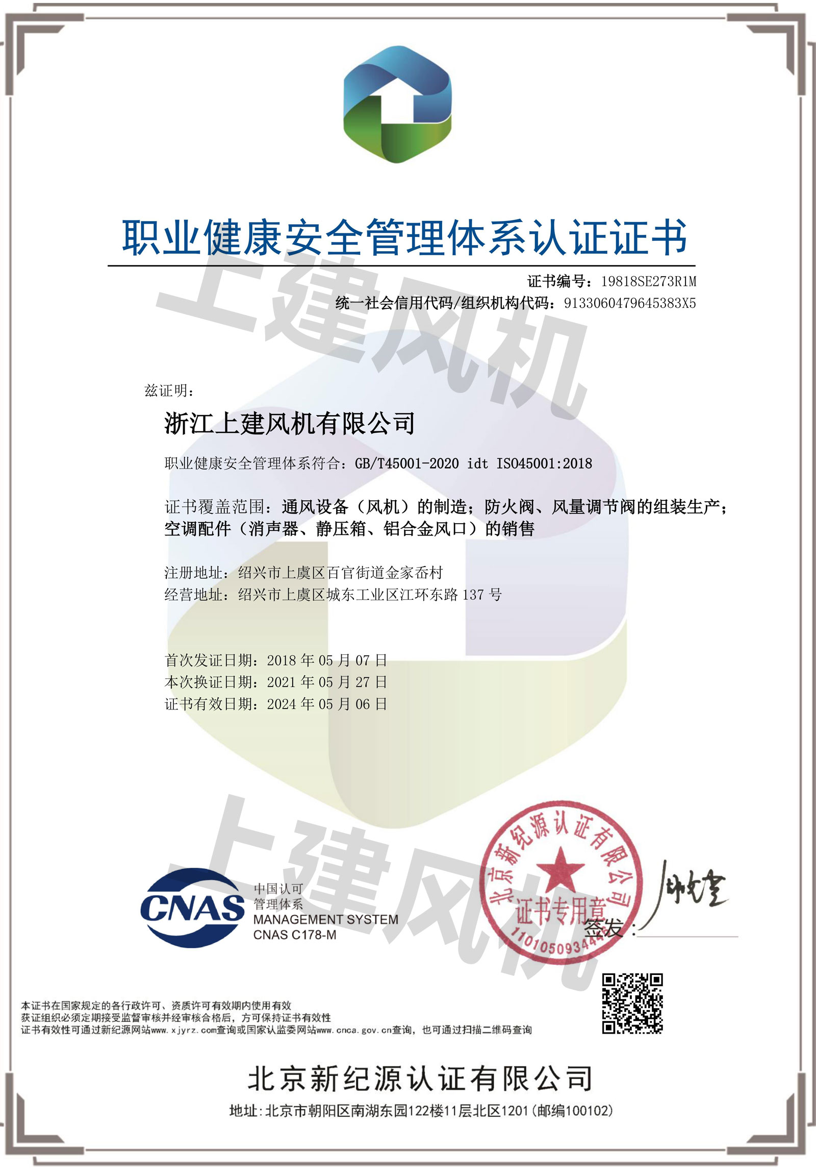 職業(yè)健康安全管理體系認(rèn)證證書