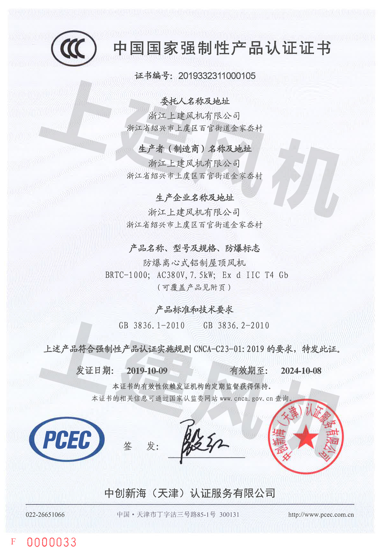 【BHTFC-30】防爆3C證書