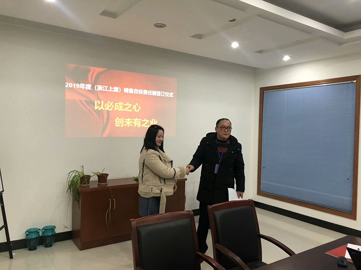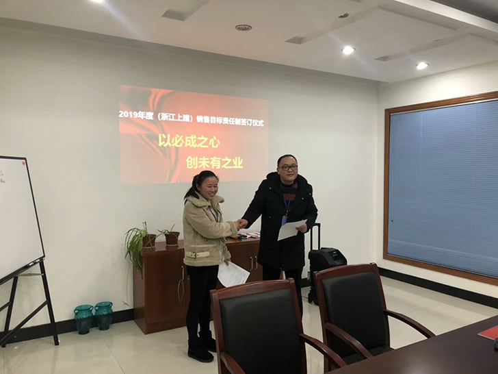 為保證公司2019年度經(jīng)營目標(biāo)順利實(shí)現(xiàn),建立績效管理體制和激勵(lì)約束機(jī)制,強(qiáng)化企業(yè)執(zhí)行力,提升公司競爭力,2019年1月14日公司舉行了銷售目標(biāo)責(zé)任制簽訂儀式。目的是通過這樣儀式,把責(zé)任形式確定下來,讓每位銷售員更加明確自身工作責(zé)任和壓力,增強(qiáng)意識(shí),提高認(rèn)識(shí),推進(jìn)公司各項(xiàng)工作在新的一年里更上一臺(tái)階。