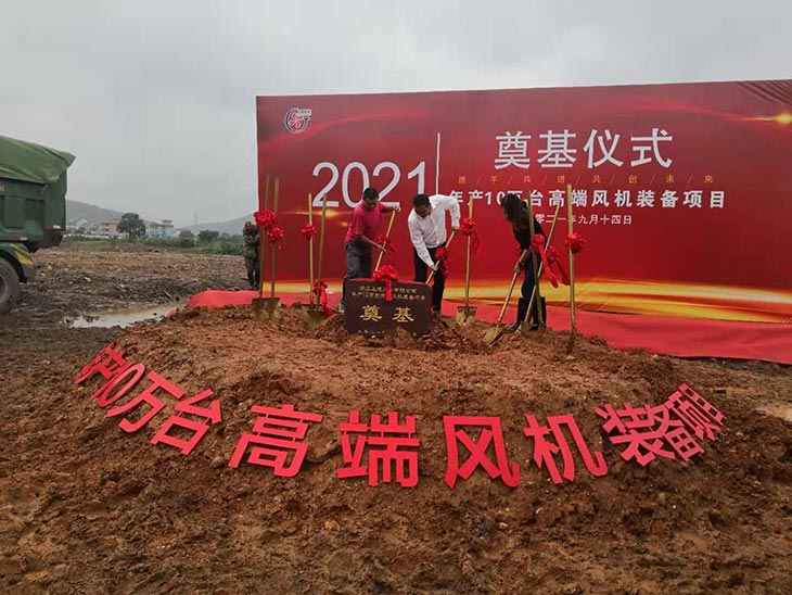 2021年9月14日上午,浙江上建風(fēng)機(jī)有限公司年產(chǎn)10萬臺高端風(fēng)機(jī)項(xiàng)目奠基儀式在紹興市上虞區(qū)豐惠新城開發(fā)區(qū)建設(shè)基地簡約而不隆重的舉行。在公司董事長兼總經(jīng)理童海標(biāo)帶領(lǐng)公司經(jīng)理級以上全體管理者共同參加了本次儀式。