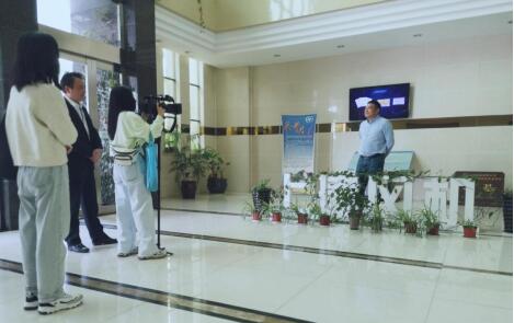 4月20日,由上虞融媒體中心電視臺及報社記者組成的采訪小組來到我公司進行“助力抗疫,援建方艙”的專題采訪。公司總經(jīng)理童海標,經(jīng)管部總監(jiān)貝建波、車間主任葉國林等人接受了采訪。