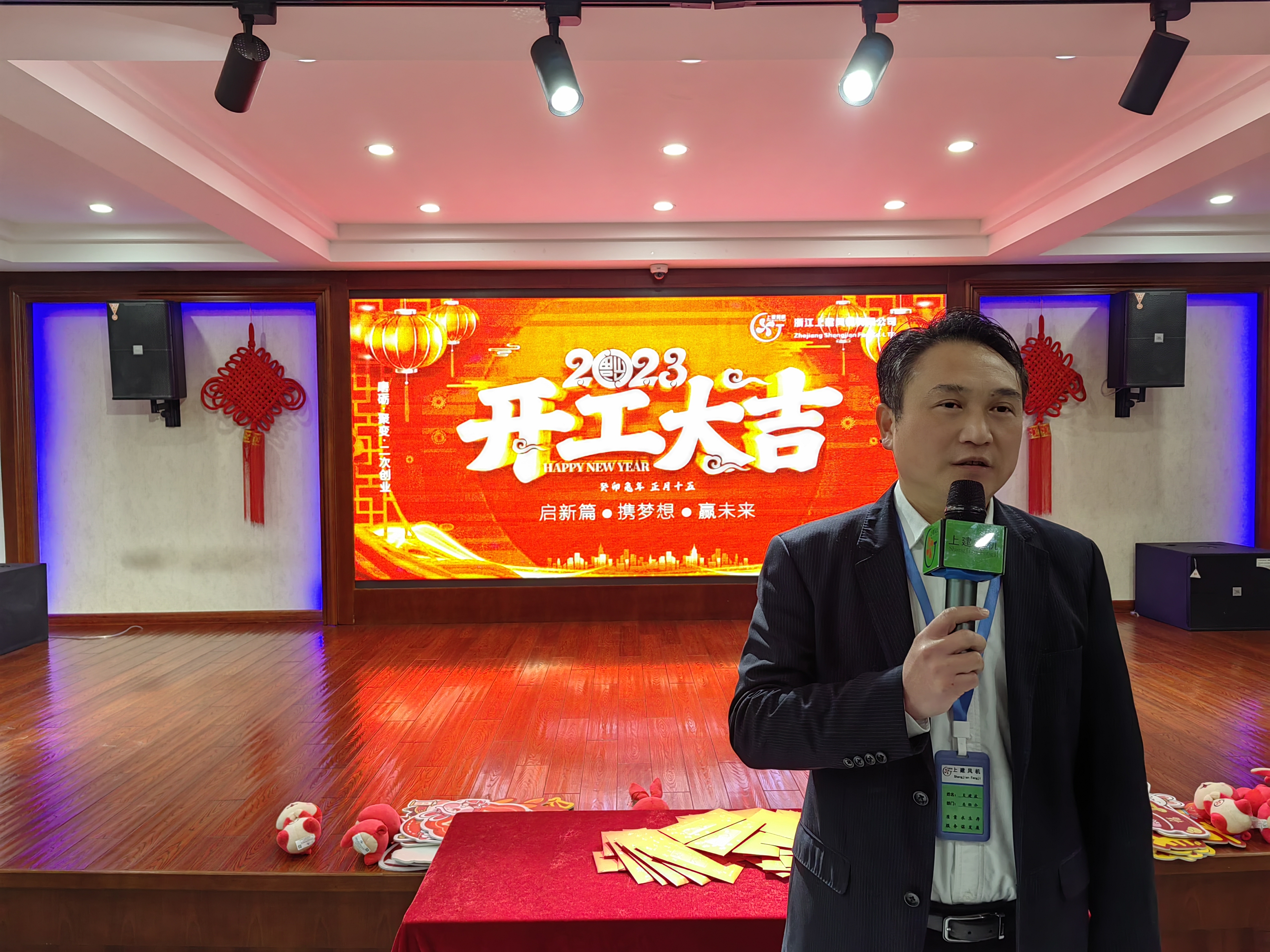 隨后童總做了開工致辭,他先向全體員工拜了個晚年,隨后他說道:“新程已開啟,奮斗正當時!癸卯兔年正月十五,公司迎來新年的第一個工作日,上建的家人們迎勢出師,劍指蒼穹。出師在即勉勵全體同仁堅持3349核心經(jīng)營理念,堅持戰(zhàn)略導向與顧客驅動,堅持文化引領與高標準對標。我們需在經(jīng)營實踐過程中時刻去檢索是否偏離主航道,我們的管理者必須從我做起,提升基于價值觀的領導力,與我們的員工保持雙向溝通,關愛員工成長。讓我們攜手站在追夢的新起點,彼此共鳴,一往無前。最后再次祝愿上建的家人們在2023生意似春筍、財源如海潮,萬般美好與期待都能如約而至!”說罷,臺下響起了雷鳴般的掌聲。