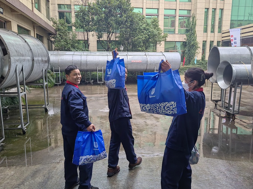 為鼓舞員工士氣,激發(fā)員工工作干勁,公司福利激勵可謂是一波接著一波。2023年2月13日開工僅僅一周,上建風(fēng)機(jī)的小伙伴就收到了來自公司的深切慰問。一袋袋干貨大禮包送到了員工的手中。